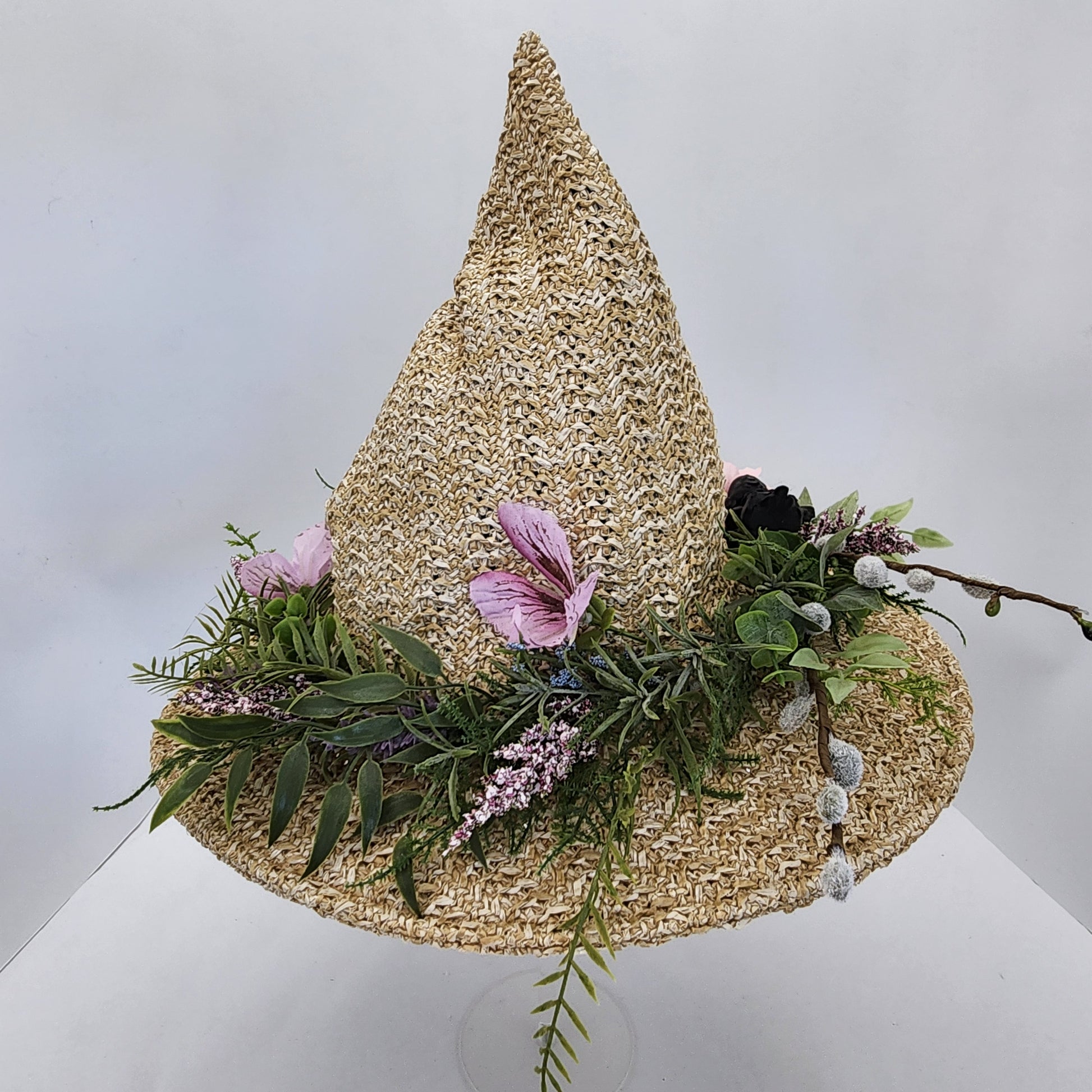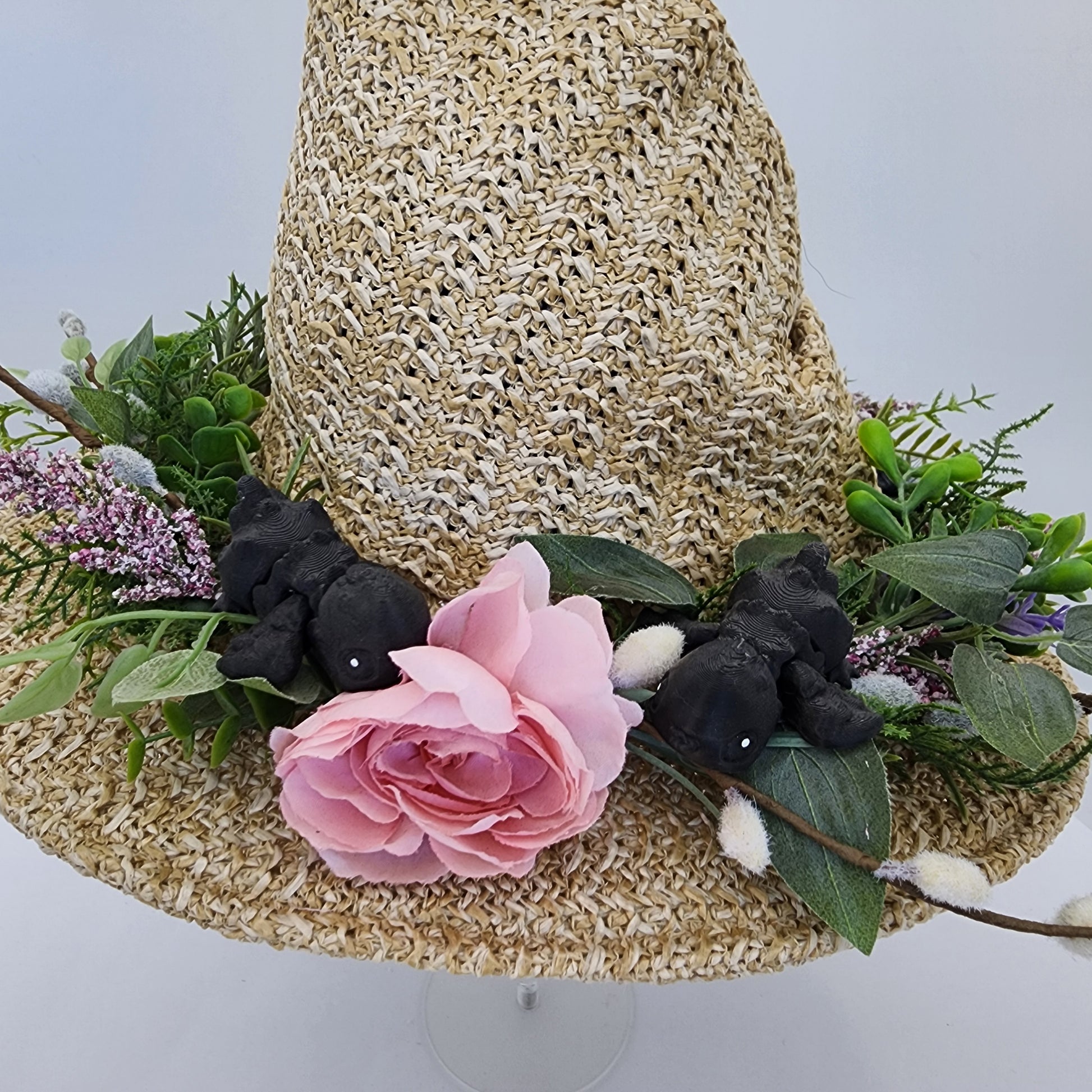 Baby Birds Floral Straw Witch Hat