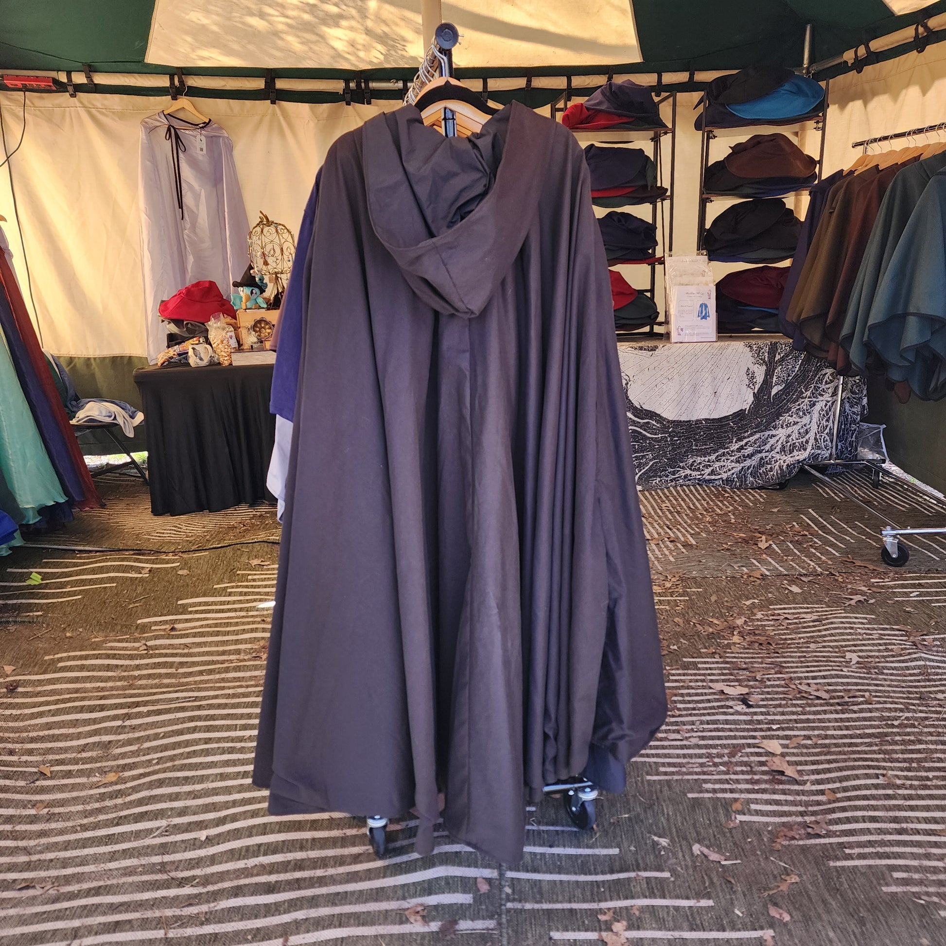 A dramatic cloak perfect for stalking down alleyways or climbing up towers, the Nightblade cloak features a water repellent twill outer fabric with a water resistant nylon lining. This cloak has a deep hood, arm-slits, and inseam pockets.