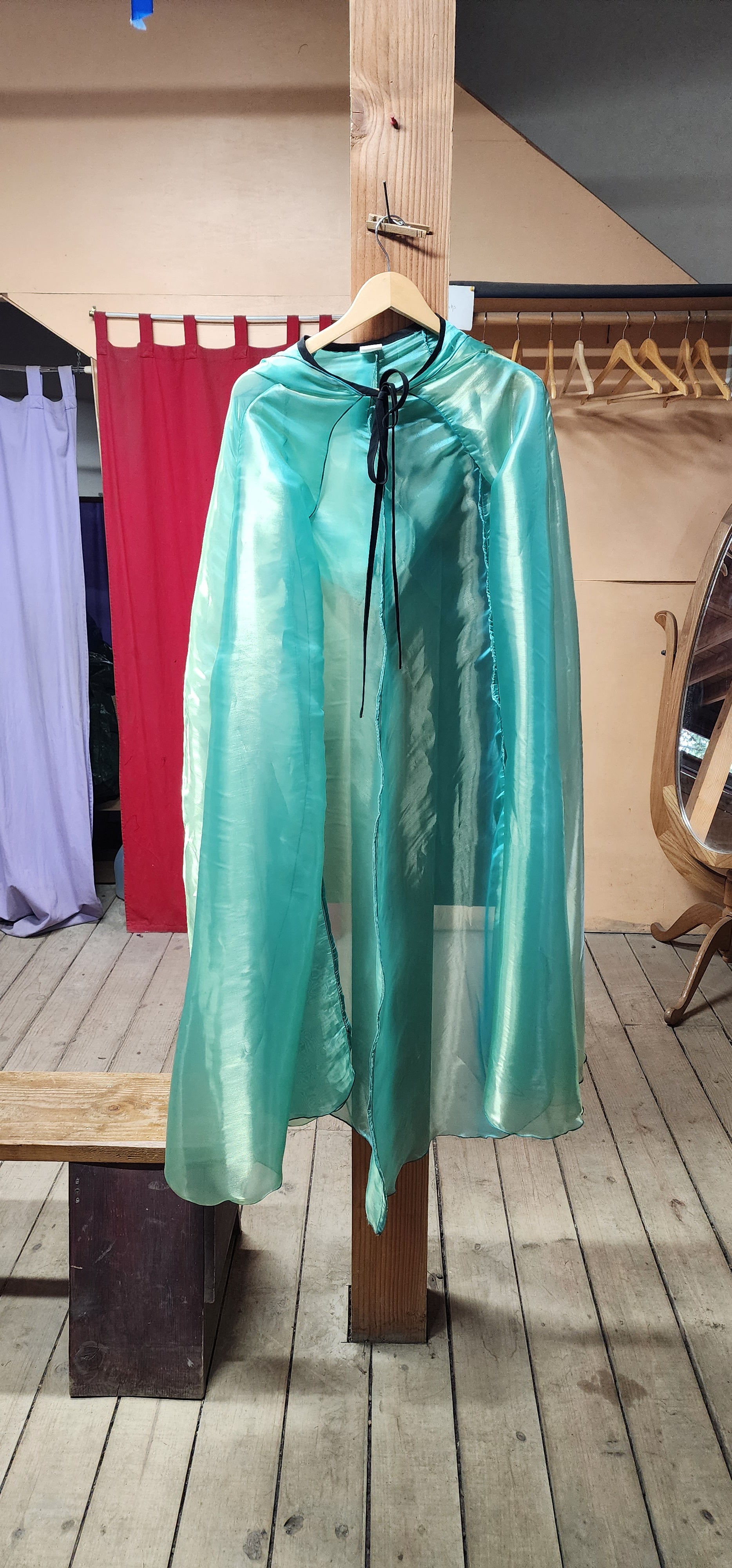 Fae Shimmer Cloak- Green/Blue Iridescent Metallic Organza