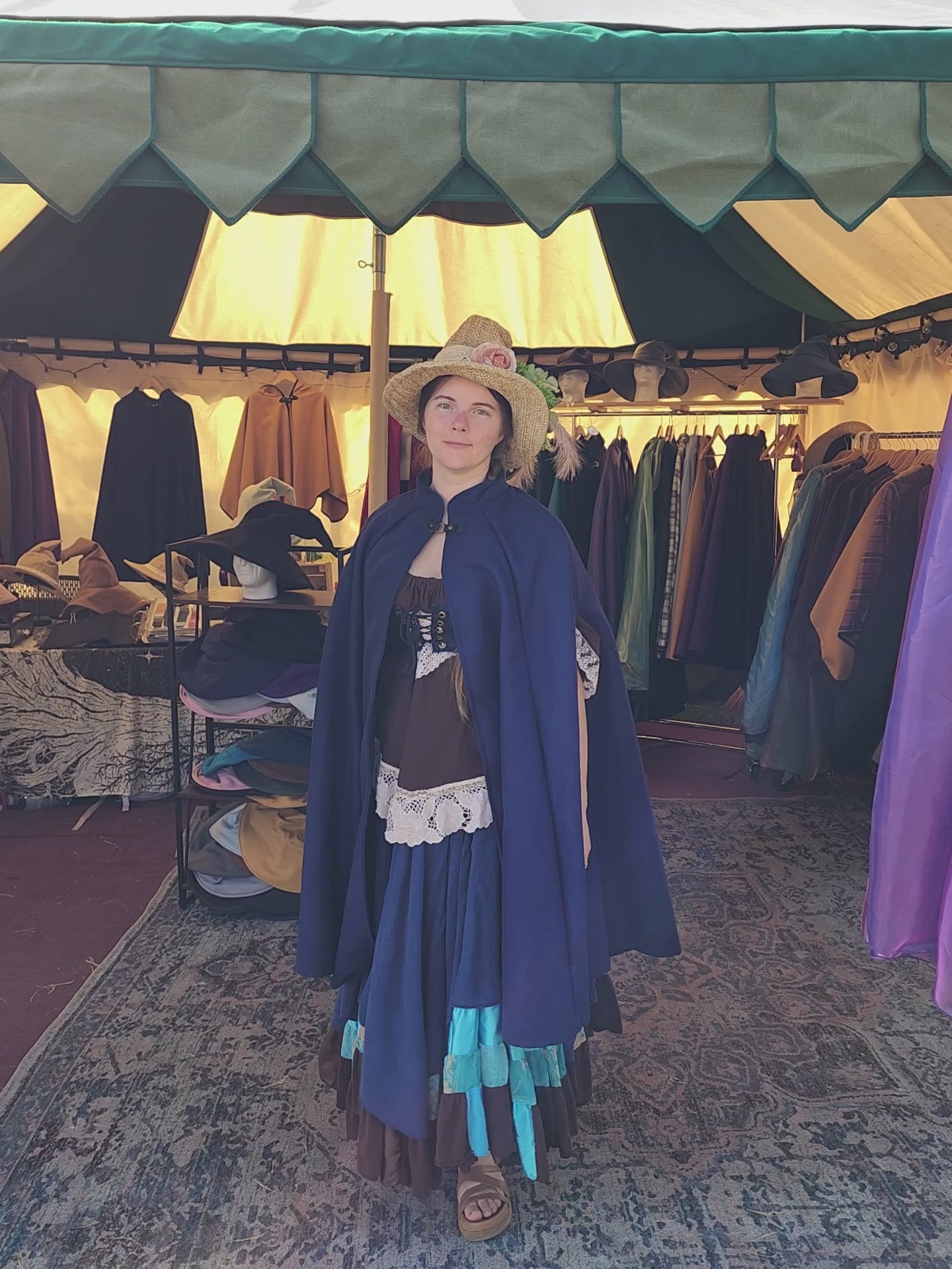 This cape is sewn with arm slits to make easy to wear while having fun at your local renaissance festival or even just running errands around town.