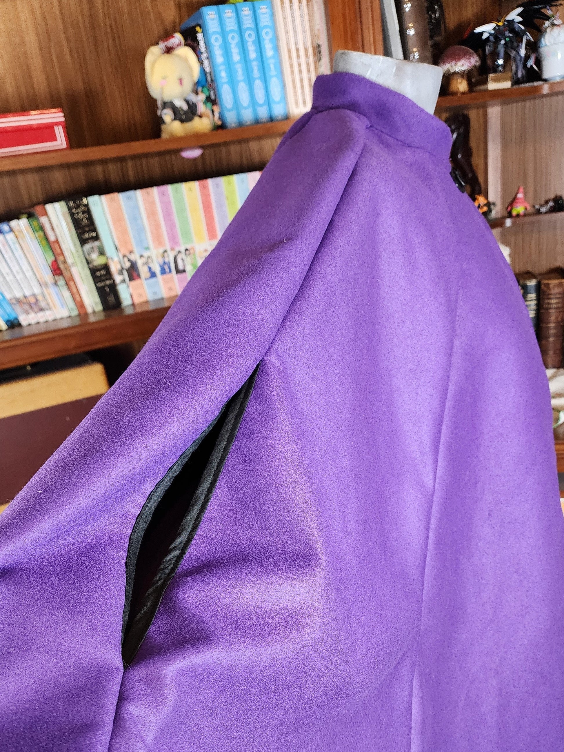 Market Day Cape- Royal Purple Mid-Length Cape with Collar and Arm Slits