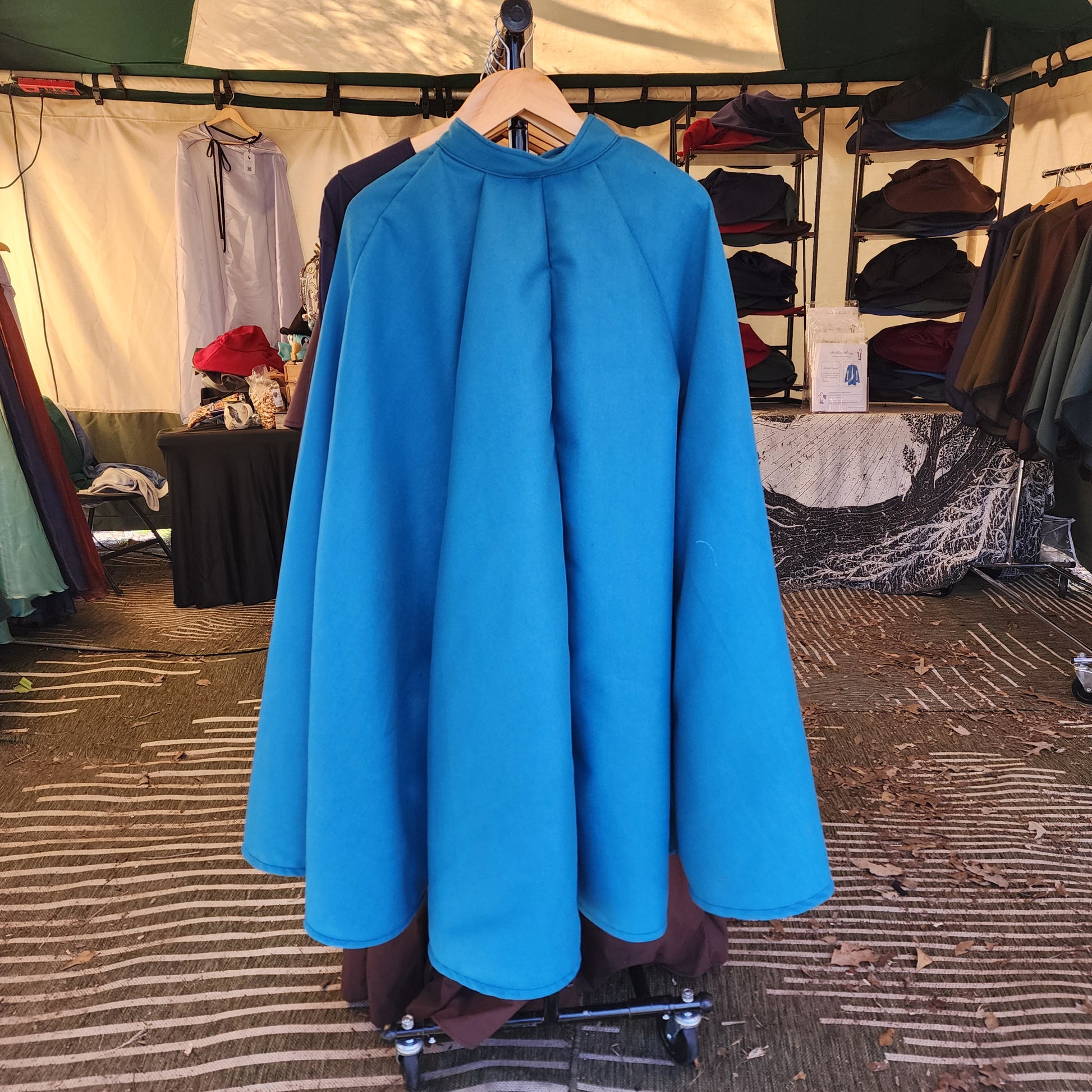 Market Day Cape- Turquoise Mid-Length Cape with Collar and Arm Slits