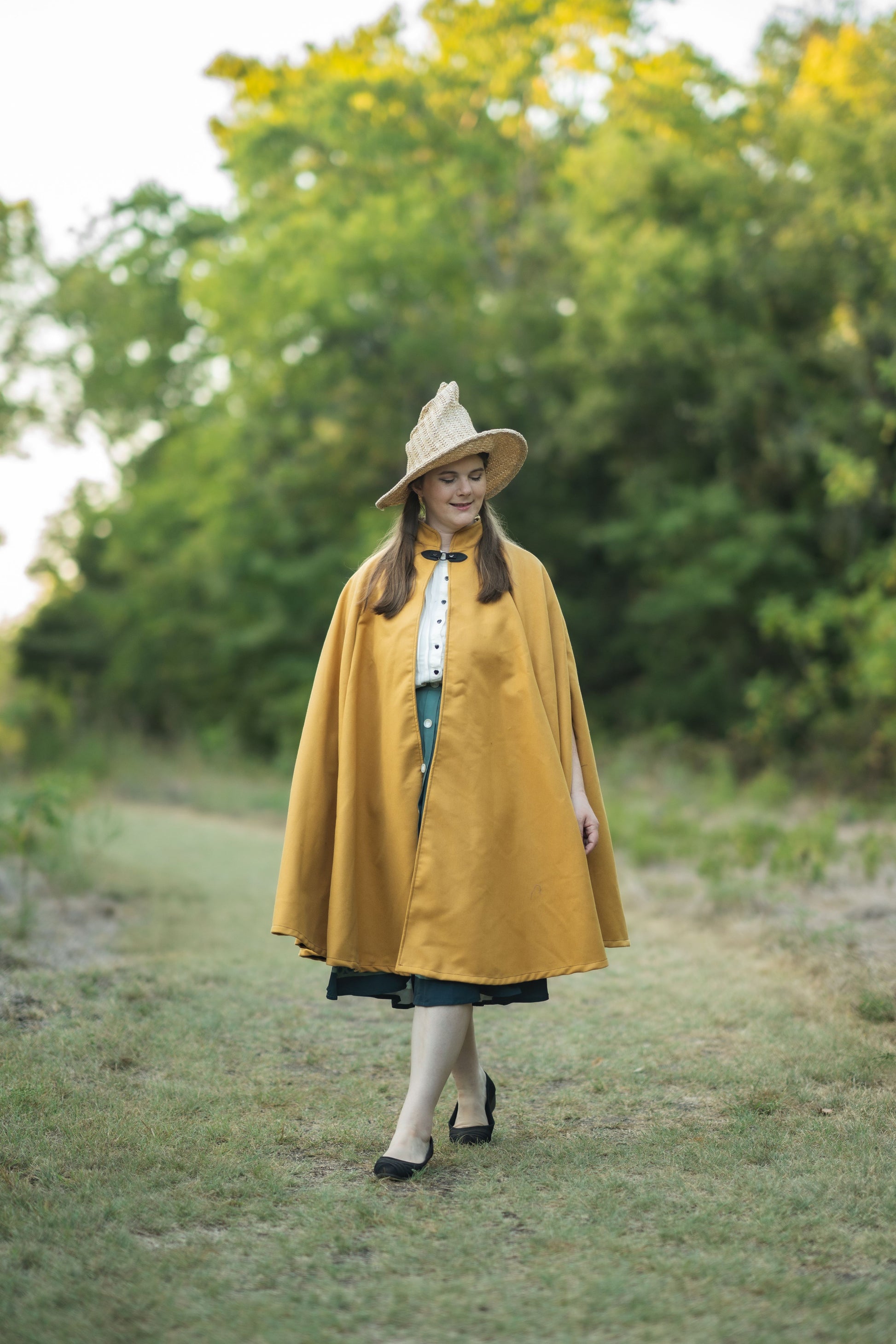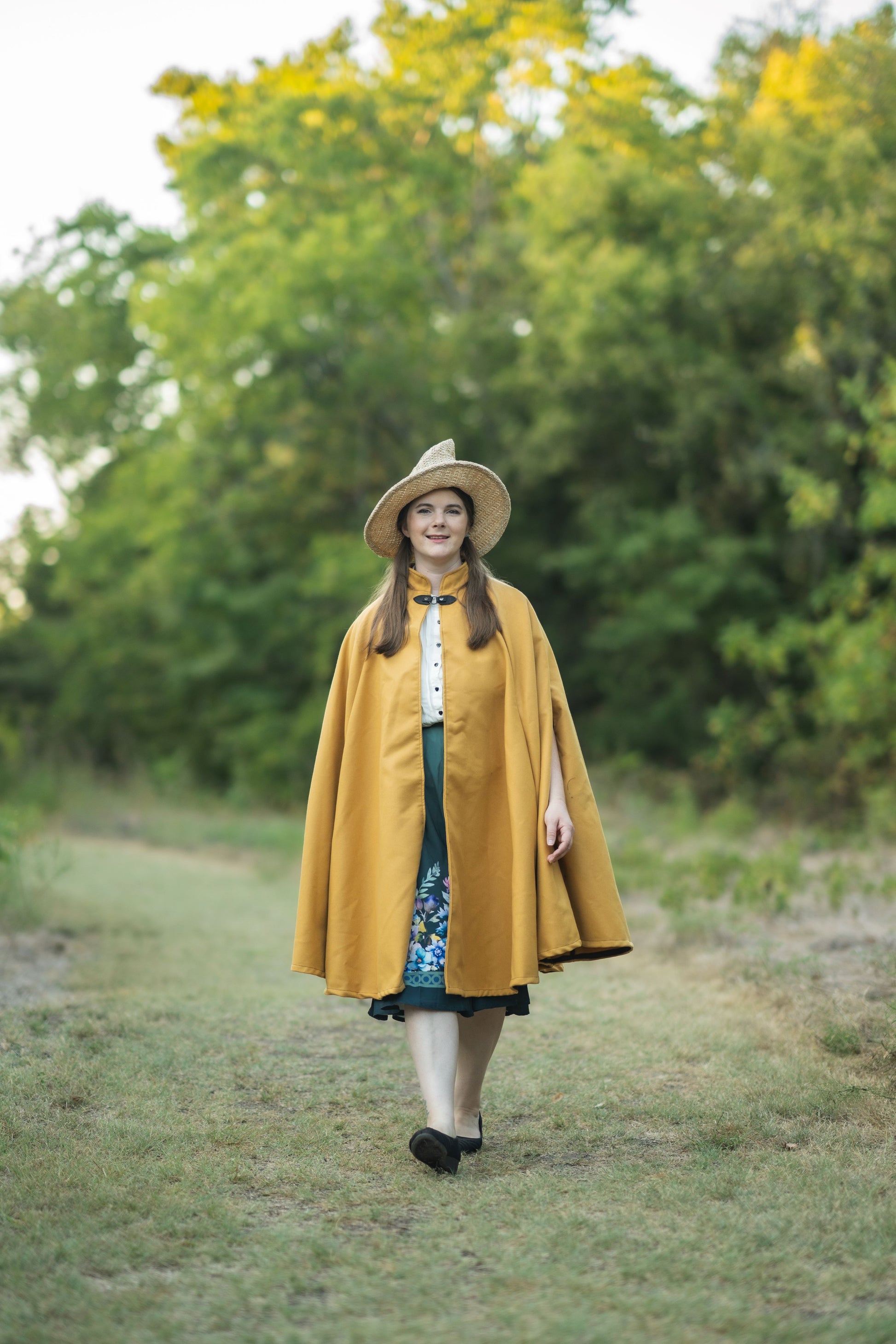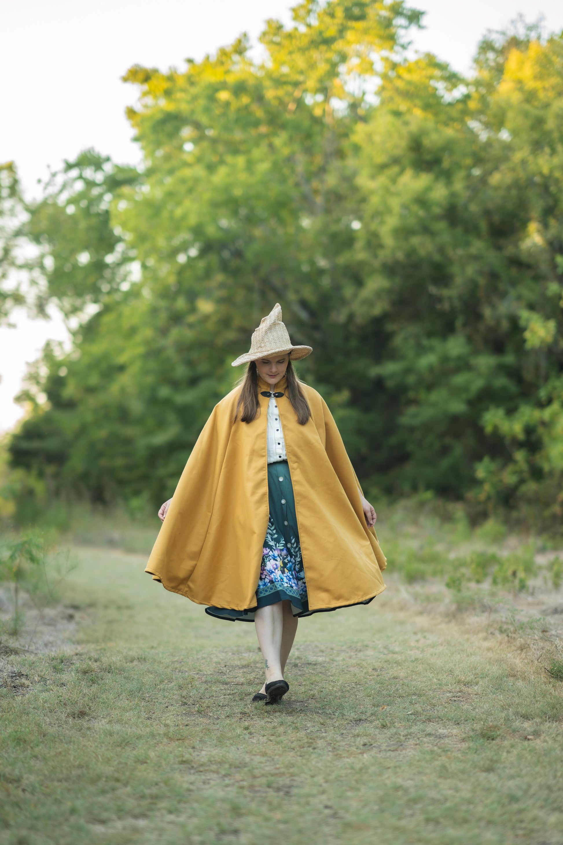 Market Day Cape- Yellow Mid-Length Cape with Collar and Arm Slits