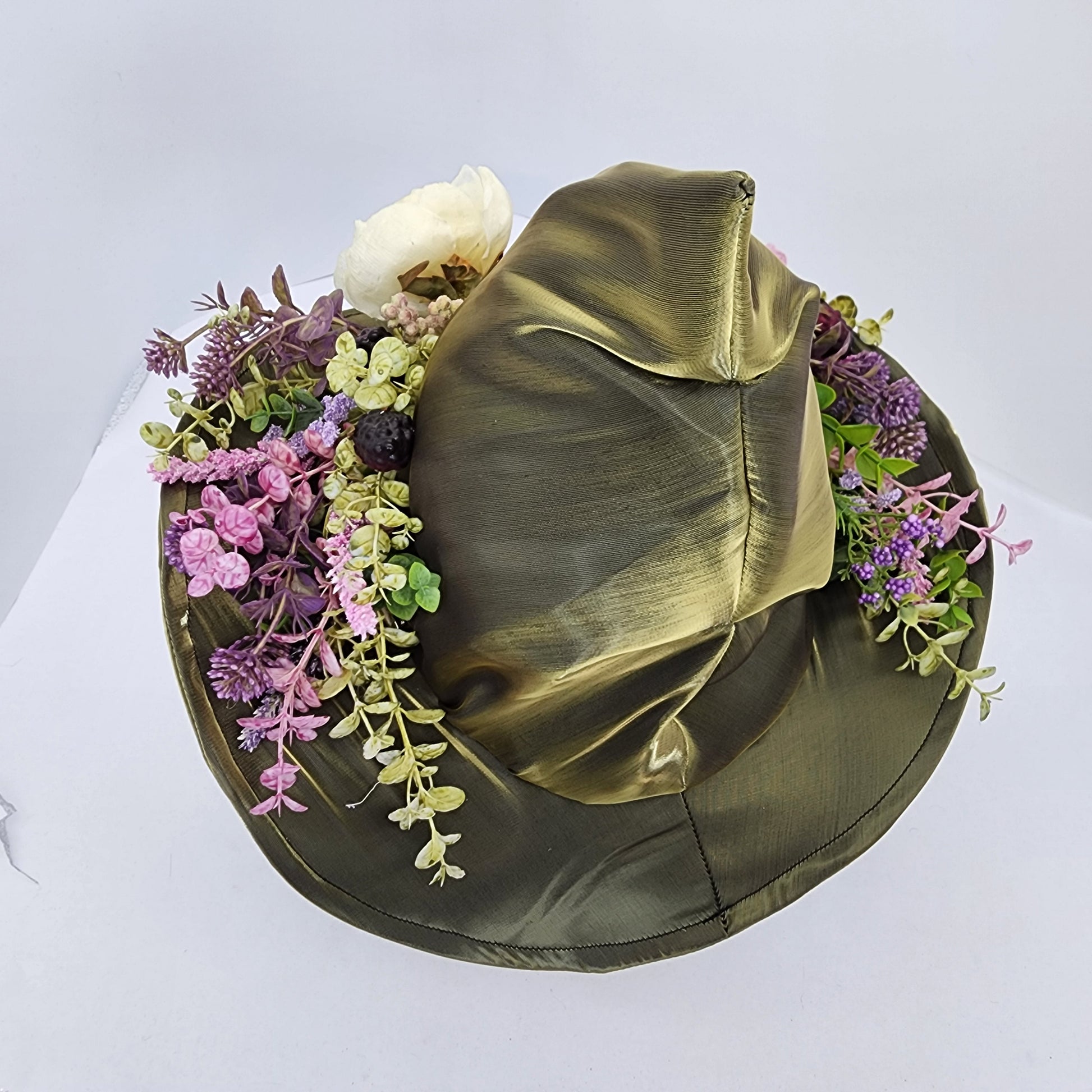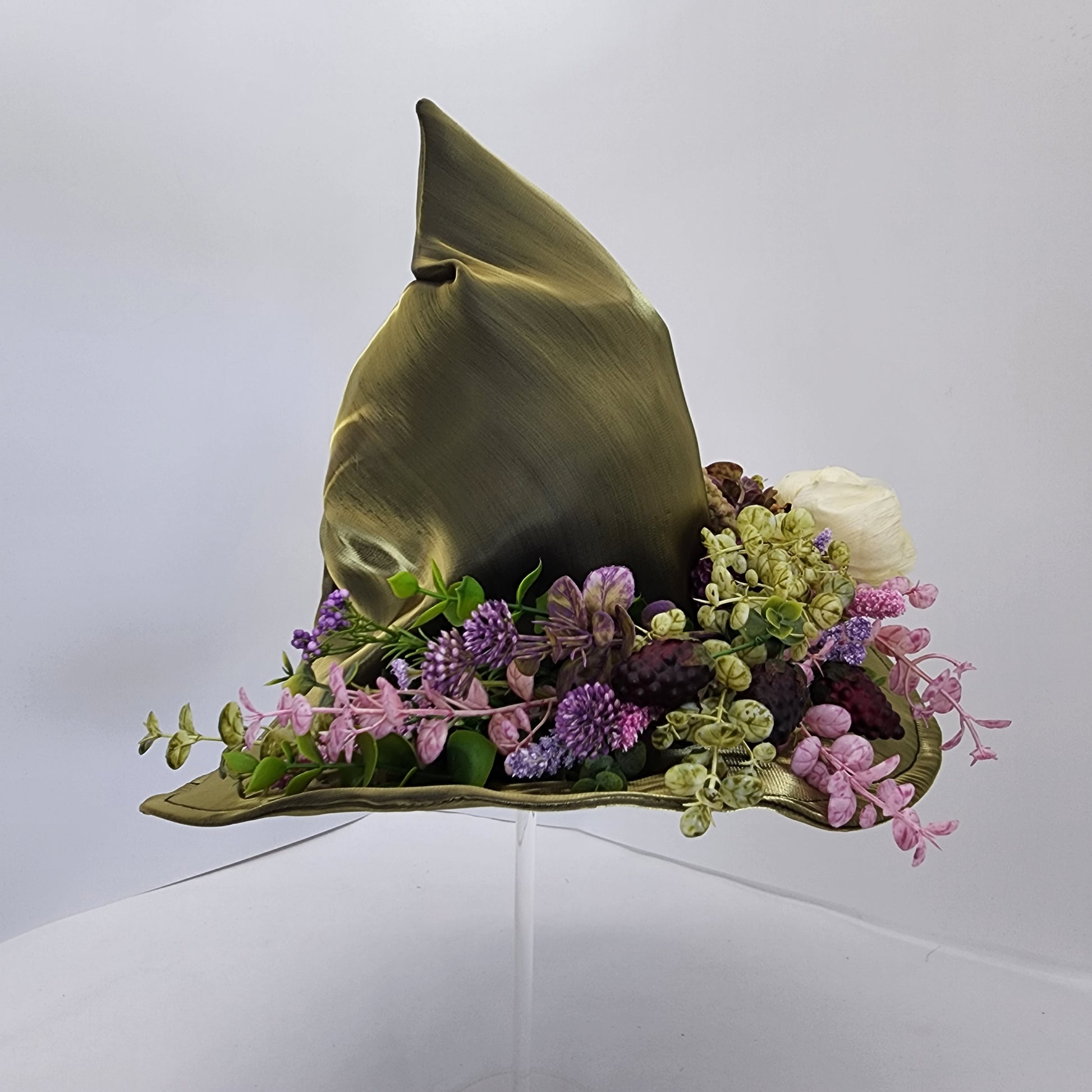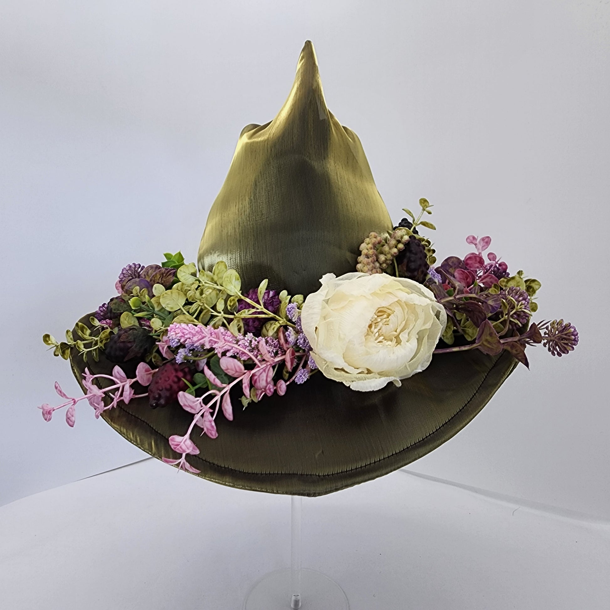 Floral decorations are interchangeable so you can easily switch them up to suit any costume! This hat has a wired brim and is fully posable.