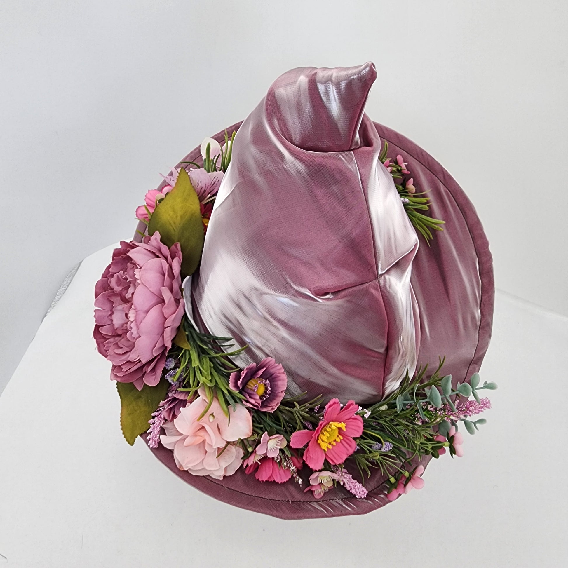 Floral decorations are interchangeable so you can easily switch them up to suit any costume! This hat has a wired brim and is fully posable.