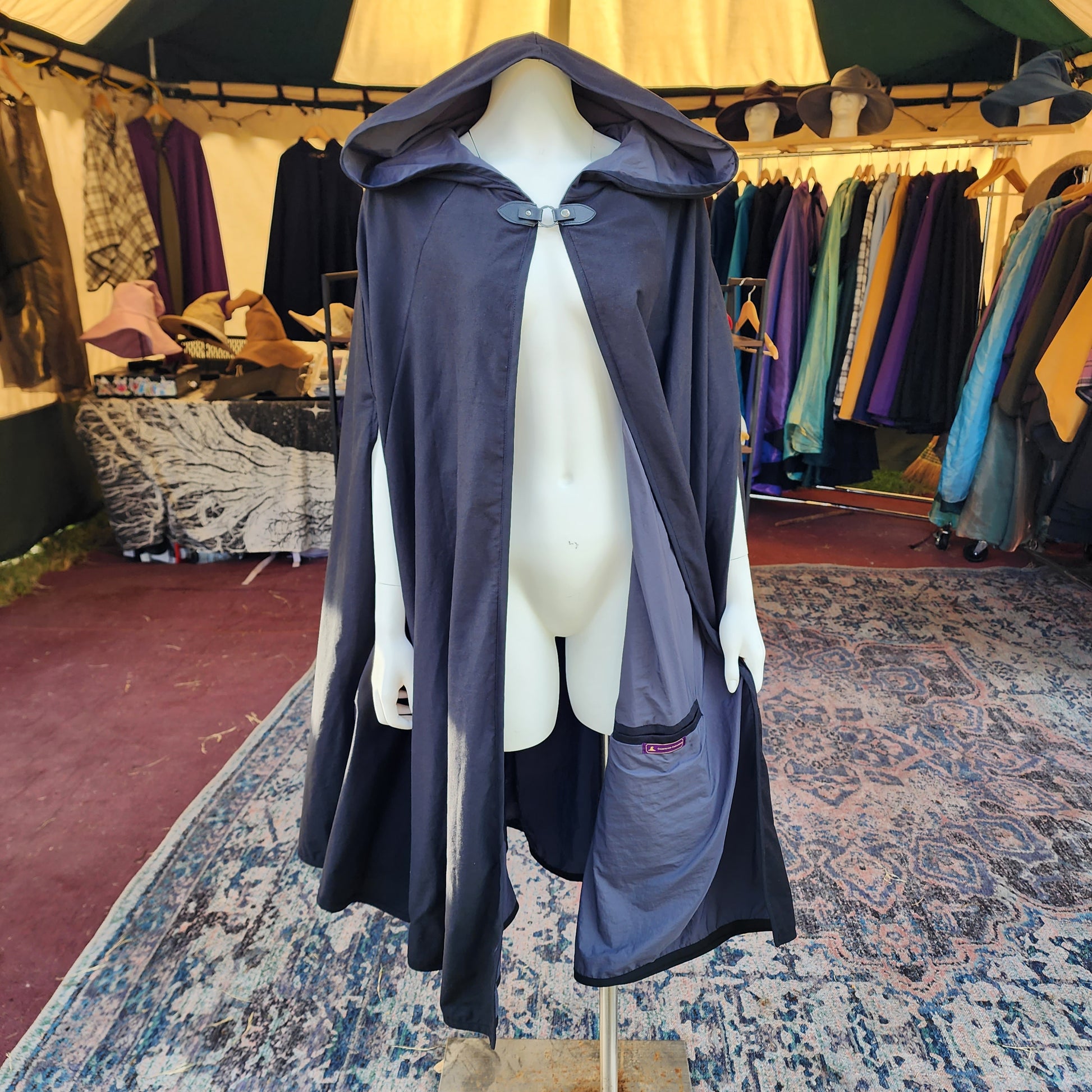 A lightweight cloak with a water resistant lining, the Traveler's Cloak is perfect for your next trip to the renaissance festival. Featuring a nice deep hood and two inner pockets and arm slits , this cloak is perfect for keeping you warm and dry while you enjoy the festival.
