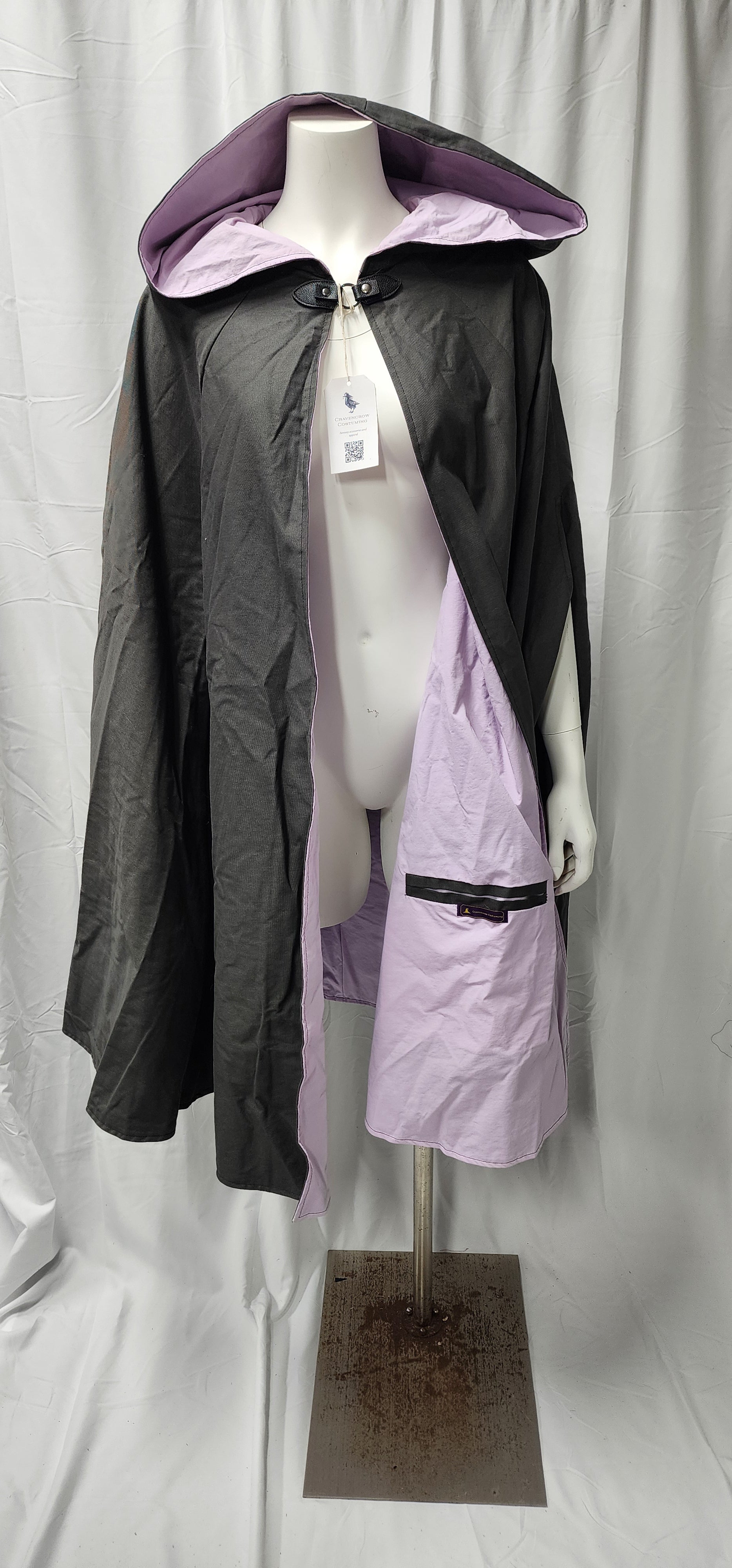 A lightweight cloak with a water resistant lining, the Traveler's Cloak is perfect for your next trip to the renaissance festival. Featuring a nice deep hood and two inner pockets and arm slits , this cloak is perfect for keeping you warm and dry while you enjoy the festival.